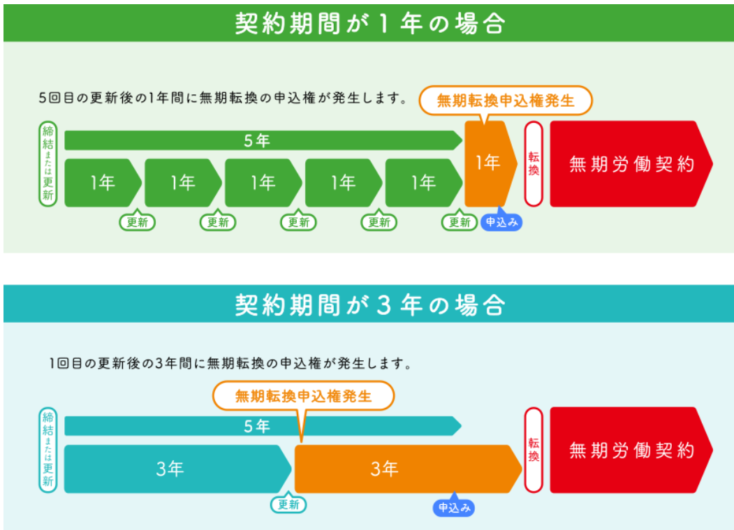 その雇用契約が終わるまでに無期転換を申し込んだら、次の雇用契約は期間の定めのない契約となります。これを『無期転換ルール』といいます。